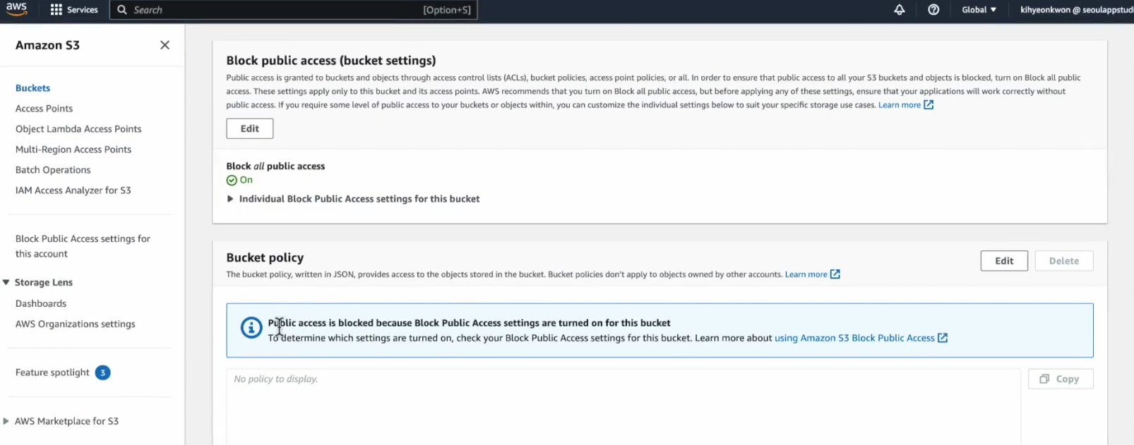 - 버킷 이름은 3자(최소)에서 63자(최대) 사이여야 합니다.