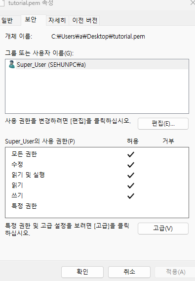 2. 나를 제외한 다른 보안주체 상속안함 + 제거