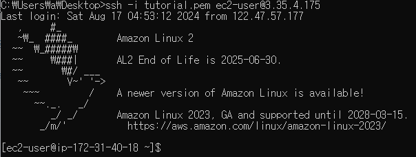 AWS LINUX 인스턴스 생성시 ec2-user 라는 호스트는 자동으로 만들어 집니다.