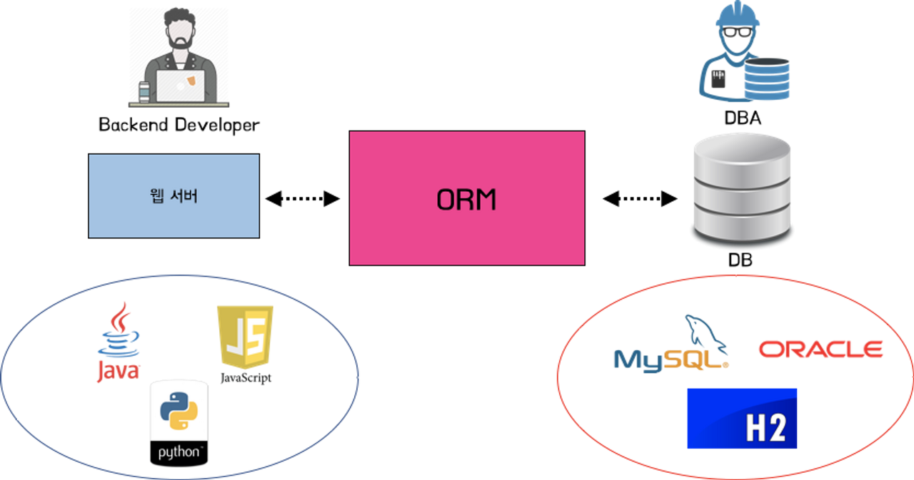 ( ORM은 객체와 DB 의 관계를 매핑 해주는 도구입니다. Object-Relational Mapping ).