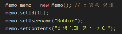 아직 영속성 컨텍스트에 저장되지 않았기 때문에 JPA의 관리를 받지 않습니다.