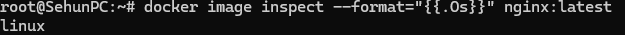 docker image inspect --format="{{.RepoTags}} {{.Os}}" nginx:latest