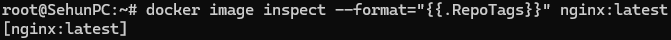 docker image inspect --format="{{.RepoTags}}" nginx:latest