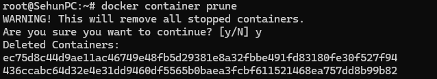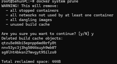 사용하지 않는 도커 이미지, 컨테이너, 볼륨, 네트워크 등 모든 도커 리소스를 일괄적으로 삭제