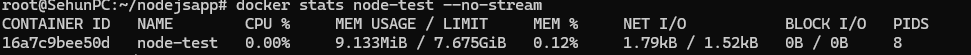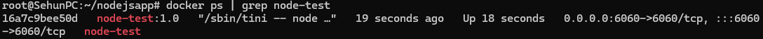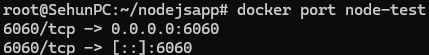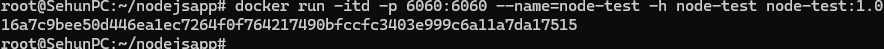 docker run -itd -p 6060:6060 --name= {이름} -h node-test node-test:1.0