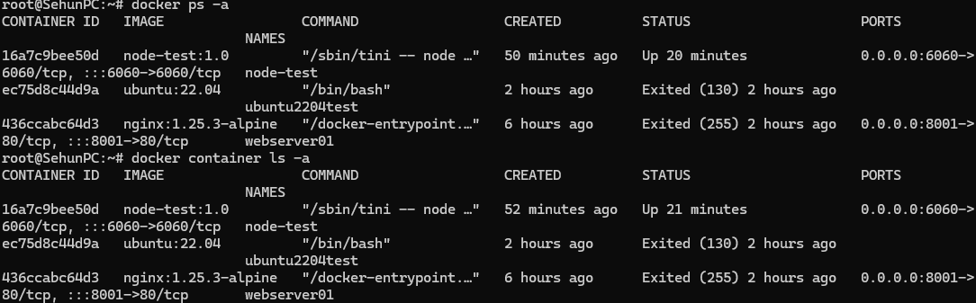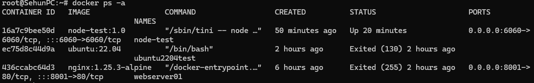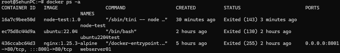# 중지된 컨테이너를 포함하여 모든 컨테이너 리스트