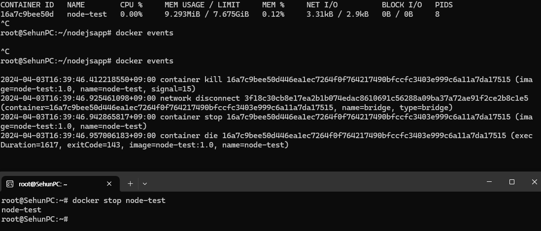 # 출력된 로그는 파일로 관리되기 때문에 HostOS 의 disk 를 사용