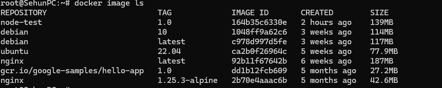 # 남아 있는 이미지 리스트 확인 – 실행 중인 컨테이너의 이미지 등