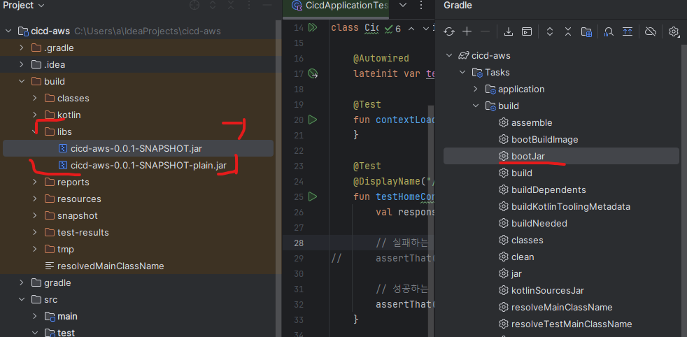 boot jar 로 jar 파일이 빌드 안에 생성 되는것을 볼수 있습니다.