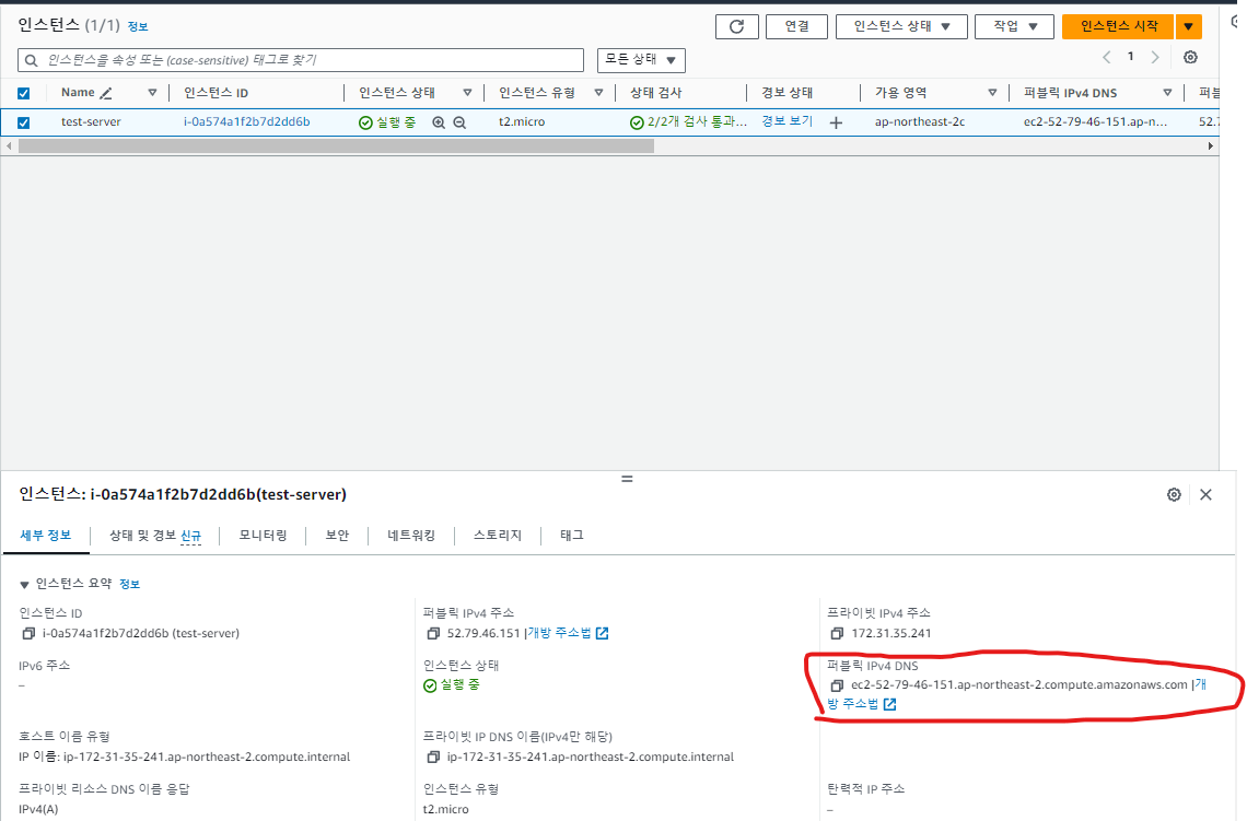 퍼블릭 ipv4 DNS 가져와서 ssh 실행 해보기