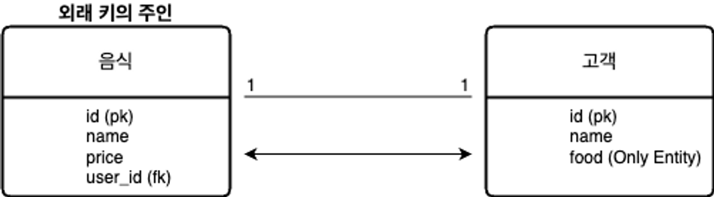 고객 Entity와 음식 Entity가 1 대 1 관계라 가정하여 관계를 맺어보겠습니다.