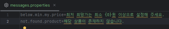 - properties 파일을 이용하여 에러 메시지를 관리할 수 있습니다.
