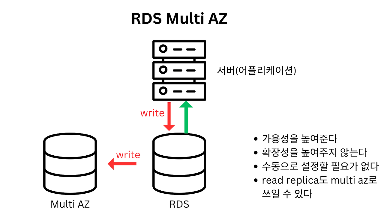 - 성능향상을 위한 read replicas 지원Disaster Recovery를 위한 multi AZ 지원수평/수직 확장성 지원EBS 백업 지원